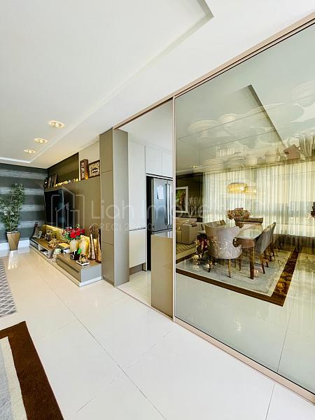 Qualidade nos acabamentos, persianas automatizadas, móveis sob medida, climatizado e com churrasqueira a carvão.
